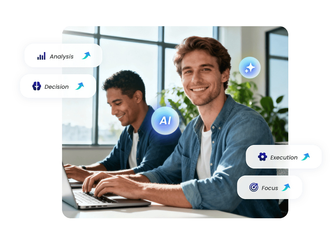 AI blends enterprise knowledge with business signals, teams move work forward with shared data, context, and decision history to make collaboration and execution more efficient.